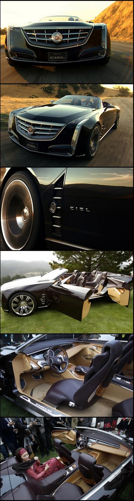 Ciel is the new Cadillac cars from Cadillac-car inspired from their cars at the time of the 30's. This car has a classic design like suicide doors and oak wood furnishings. To add a car on the middle class is to put a cigar humidor. Ciel is the sky in French and Cadillac sky-high expectations put on this car to return back to their name after CARPOCALPYE two years ago. Ciel will be equipped with 3.6-liter V6 engine 428 horsepower and a hybrid motor using lithium ion batteries.