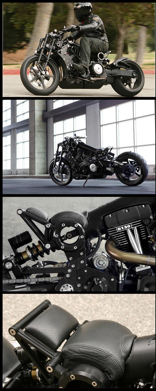 Previously we have show Confederate X132 Hellcat, a street bike with a USD 50,000 (RM 150,000). Today let's look at motorcycles of Confederate - P120 Fighter. This bike has a very industrial design and different from most other bikes available in the market. For example it has a transparent fuel tank which allows you to see how much of the remaining oil in it. It is powered by engine 1966 cc V Twin 150 horsepower and front and rear tires are made of carbon fiber. A Confederate P120 Fighter is priced at USD 80,000 (RM 240 000). Damn nice!